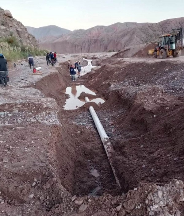 En Yacoraite, la DPRH realiza el reemplazo de cañerías de riego en colaboración con Agua Potable de Jujuy S.E. La obra garantiza el suministro de agua para riego en la zona de Alto Huacalera.