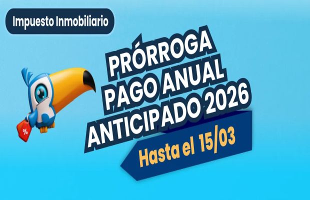 La Dirección Provincial de Rentas informa que se prorrogan los beneficios y descuentos vigentes para el pago del Impuesto Inmobiliario Anual 2026, extendiéndose el plazo para acceder al pago anual anticipado con bonificaciones, hasta el 15 de marzo de 2026, con el objetivo de seguir acompañando a los contribuyentes y facilitar el cumplimiento de sus obligaciones tributarias.