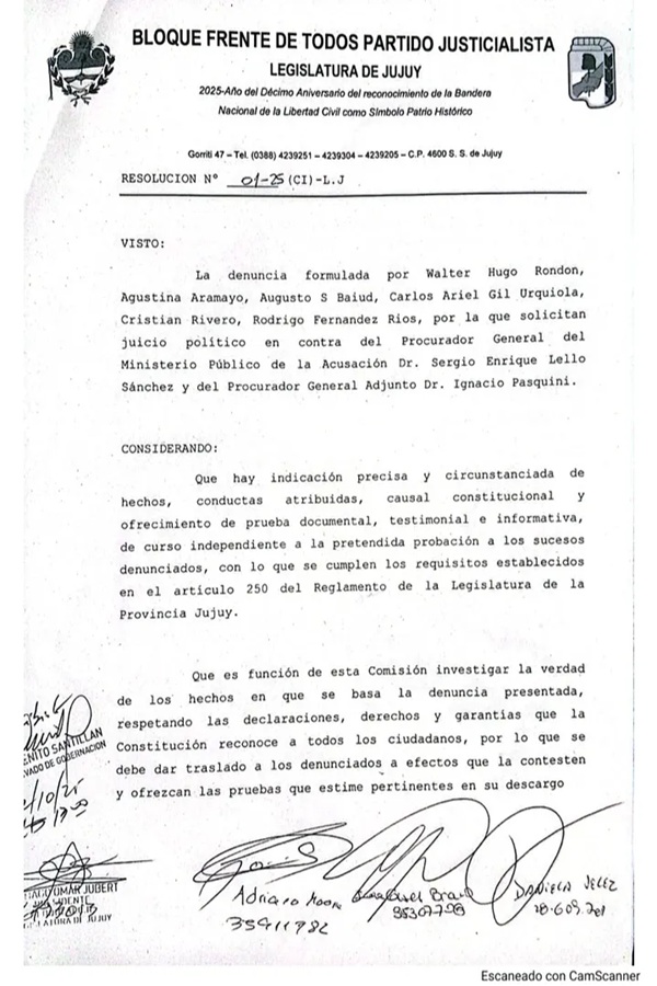 En la mañana de hoy ingreso un pedido de juicio político al procurador general de la provincia Dr. Lello Sánchez a la Legislatura, a lo cual los diputados dieron lugar.