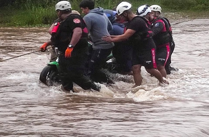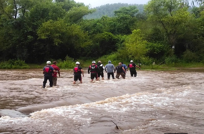 Ante la crecida del río en las Serranías de Zapla, personal de la División Rescate y Salvamento de la Policía de la Provincia intervino para brindar asistencia a personas que habían quedado varadas en el lugar.