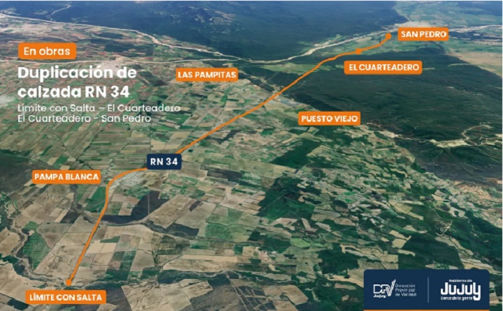 Con una inversión estimada en $65.000 millones y un plazo de ejecución de 20 meses, la duplicación de la RN 34 es una de las obras viales más importantes en la historia reciente de Jujuy. Asimismo, vale destacar que otra empresa contratista despliega la obra que completa el enlace desde El Cuarteadero con San Pedro.