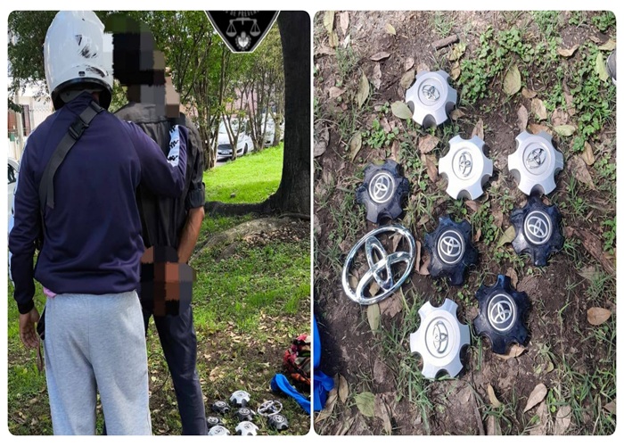 Entre sus pertenencias, los efectivos hallaron ocho tapas de rueda y un emblema de parrilla, elementos de los que no pudo acreditar procedencia y que coincidían con lo denunciado por el propietario del rodado.