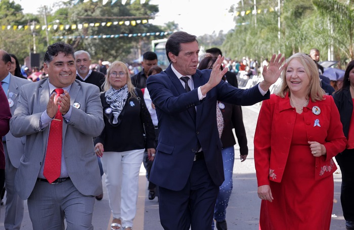 A primera hora de la jornada junto al intendente anfitrión, Luciano Moreira, Sadir estuvo presente en los actos protocolares en la avenida Crucero General Belgrano y el Te Deum en el templo parroquial.
