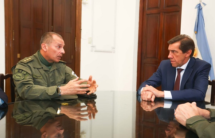 El gobernador de la Provincia, Carlos Sadir, recibió el saludo protocolar del jefe de la Región IV de Gendarmería Nacional, comandante mayor Marcelo Adrián De La Cruz.