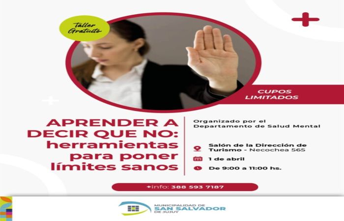 En este contexto, desde el área informaron la continuidad de estas propuestas con un nuevo taller titulado “Aprender a decir que no: herramientas para poner límites sanos”, que se realizará el próximo 1 de abril, de 9 a 11 horas, en el salón de la Dirección de Turismo (Necochea 565).