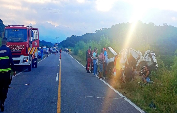 ​Un gravísimo siniestro vial se registró ayer tarde a la altura del paraje San Juancito, donde una camioneta Toyota Hilux y un utilitario Peugeot Expert colisionaron de manera frontal.