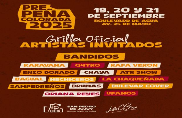La Municipalidad de San Pedro de Jujuy, anuncia la realización de la 1ra. Pre-Peña Colorada 2025, que se llevará a cabo los días 19, 20 y 21 de septiembre sobre el Boulevard de Agua, en la Avenida 25 de Mayo.