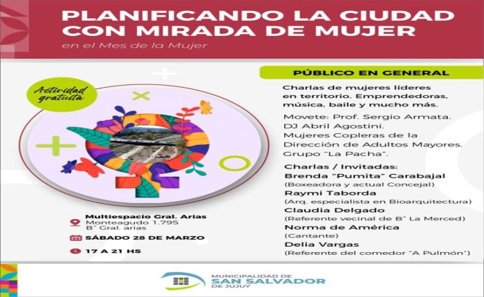 En el marco del Mes de la Mujer, la Municipalidad de San Salvador de Jujuy llevará adelante la jornada “Planificando la ciudad con mirada de mujer”, una propuesta abierta a todo el público que busca promover el intercambio de experiencias, el liderazgo femenino y la participación comunitaria.