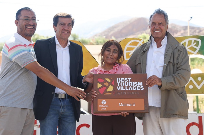 La actividad del secretario Scioli continuó en Maimará donde le entregó a la intendenta Susana Prieto una distinción al pueblo por ser uno de los dos ganadores argentinos de Best Tourism Village en 2025, lo que convirtió al país en el único de Hispanoamérica en recibir dos galardones en esa edición.