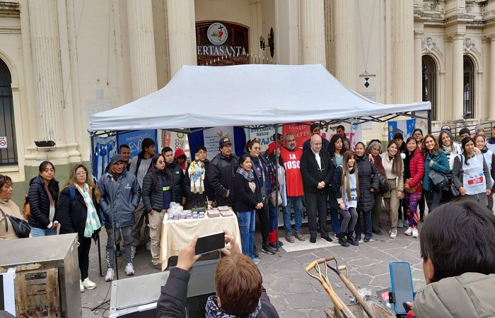 En este sencillo acto el obispo de Jujuy, Monseñor César Daniel Fernández, bendijo este lunes 9 de junio de 2025 las herramientas de trabajo de decenas de miembros de cooperativas de la economía popular. La ceremonia buscó “bendecir el trabajo como instrumento desarrollador de dignidad para las personas” y reforzar el compromiso de la Iglesia con proyectos productivos y fuentes de empleo, especialmente en un contexto económico adverso.