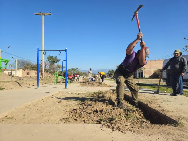 En el lugar se trabajó de manera conjunta con personal de obras públicas que realizó la excavación de una zanja donde se instalará el cableado subterráneo para el nuevo alumbrado. A su vez, ya se trabajan con los moldes para las nuevas farolas y sus respectivas columnas.
