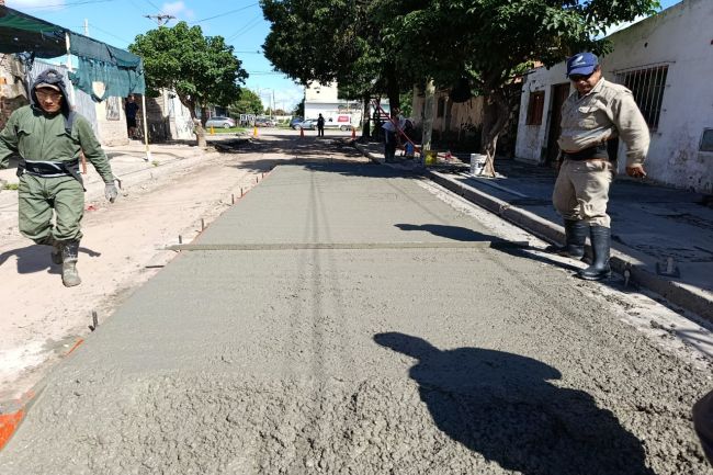 Luego de los preparativos de nivelación de terreno y los trabajos de instalación de la red de cloacas a vecinos que no contaban con la misma, personal de Pavimentación inició con el hormigonado de otro frente de obra que se había anunciado en la ciudad.
