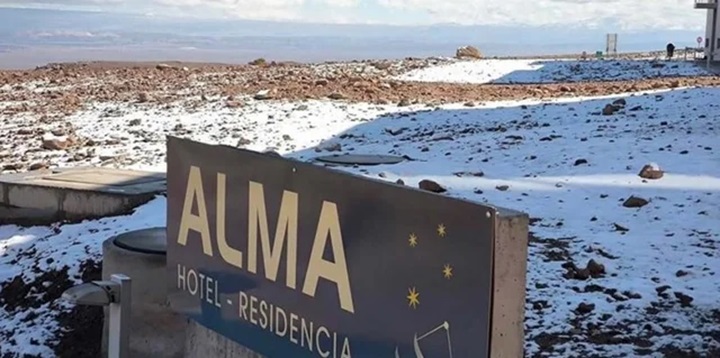 Desde el observatorio astronómico ALMA, ubicado en el norte de Chile, a 2.900 metros de altura, difundieron hoy imágenes en redes sociales del desierto de Atacama cubierto de nieve, un hecho muy poco común en la zona.