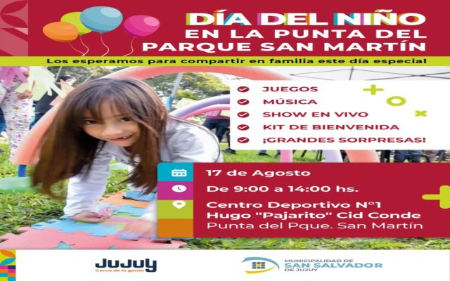 La Municipalidad de San Salvador de Jujuy informa que, debido a la reciente modificación de la fecha oficial del Día de las Infancias a nivel nacional, se reprogramaron los festejos previstos inicialmente para el domingo 10.