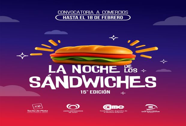 La Unión Empresarios de Jujuy, de manera conjunta con la Confederación Argentina de la Mediana Empresa (CAME) y la Municipalidad de San Salvador de Jujuy, organiza la 15° edición de “La Noche de los Sándwiches”, que se llevará a cabo el jueves 26 de febrero de 2026 en San Salvador de Jujuy y en todas las localidades de la provincia que deseen adherirse.