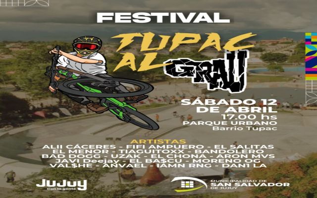 Con el objetivo de brindar un espacio de expresión, encuentro y disfrute para las juventudes de la ciudad, el próximo sábado se llevará a cabo el Festival “Tupac al Grau”, un evento que promete música urbana, deporte y arte en un entorno al aire libre.