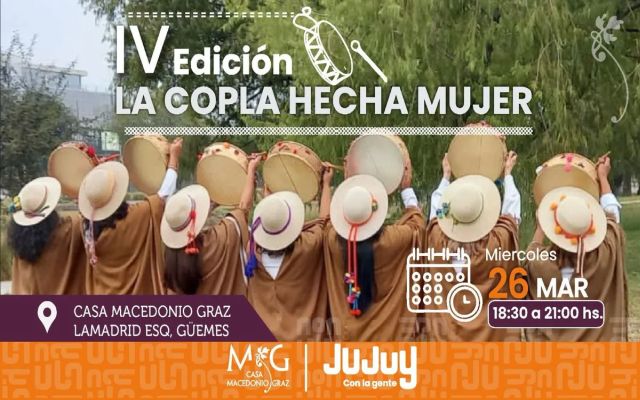 La Secretaría de Cultura invita a vivir una noche especial con la IV edición de “La Copla Hecha Mujer”, un encuentro donde la voz de las mujeres jujeñas será protagonista. La cita es este miércoles 26 de marzo, a las 18:30 hs, en Casa Macedonio Graz (Lamadrid esq. Güemes), un espacio ideal para celebrar nuestras raíces.