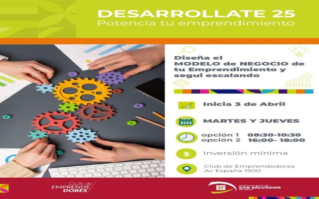 El curso consta de ocho clases intensivas y ofrece dos turnos disponibles: martes y jueves de 8:30 a 10:30 horas o martes y jueves de 16:00 a 18:00 horas. Las clases se dictarán en el Club de Emprendedores, ubicado en Av. España 1500, y el inicio está previsto para el jueves 3 de abril. La inversión para participar tiene un costo mínimo.