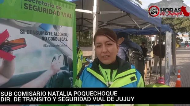 La Subcomisario de Seguridad Vial Natalia Poquechoque comentó, “estamos con la semana de seguridad vial, empezamos el día 2 de junio y tratamos de estar en todas las regionales, más que nada para concientizar a la gente lo de la seguridad vial”.