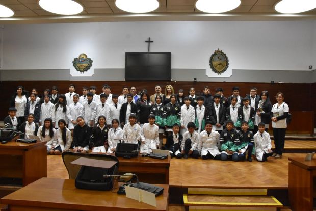 Los alumnos acompañados por los docentes Karina Díaz, Sandra Severich, Gladis Gallardo y Aldo Mamaní fueron recibidos en el recinto de sesiones por los diputados Valeria Gómez y Omar Gutiérrez quienes les explicaron el funcionamiento de la cámara de diputados y como se generan las leyes, desde la presentación del proyecto, pasando por el trabajo en comisión y luego su aprobación en el recinto de sesiones.