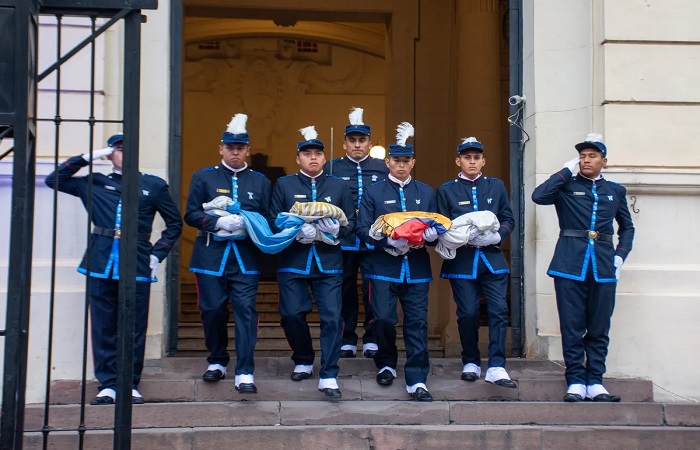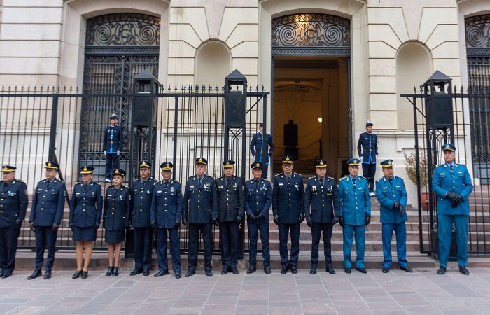 En el marco de las actividades conmemorativas por la Semana de Mayo, el jefe de la Policía de la Provincia, Milton Sánchez, junto al jefe del Servicio Penitenciario, Félix Armando Guevara, encabezaron el acto de izamiento de las banderas Nacional y de la Libertad Civil en la explanada de ingreso a Casa de Gobierno.