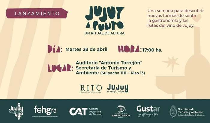 Se lanza en Buenos Aires «Jujuy a Punto», semana gastronómica que, del 15 al 24 de mayo, unirá las Rutas del Vino y la cocina jujeña en un ritual de altura.