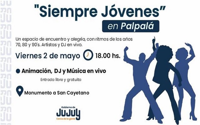 La Secretaría de Cultura de la Provincia y la Municipalidad de Palpalá, invitan a toda la comunidad a disfrutar de “Siempre Jóvenes”, un evento pensado como un espacio de encuentro, alegría y recuerdos compartidos, con la mejor música de los años 70, 80 y 90.