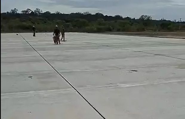 El director de Pavimento destacó que, a diferencia del tiempo de espera para el fraguado del hormigón en una calle, para la cancha es diferente “en este caso no, es un fraguado hasta que uno le pueda caminar por la superficie, ya que no va a soportar en su momento peso ni tránsito vehicular”, comentó agregando “una vez fraguado va a ponerse lo que es el césped sintético y en su momento soportará el peso de alguna ambulancia que tenga que entrar sobre lo que es la cancha”, concluyó.