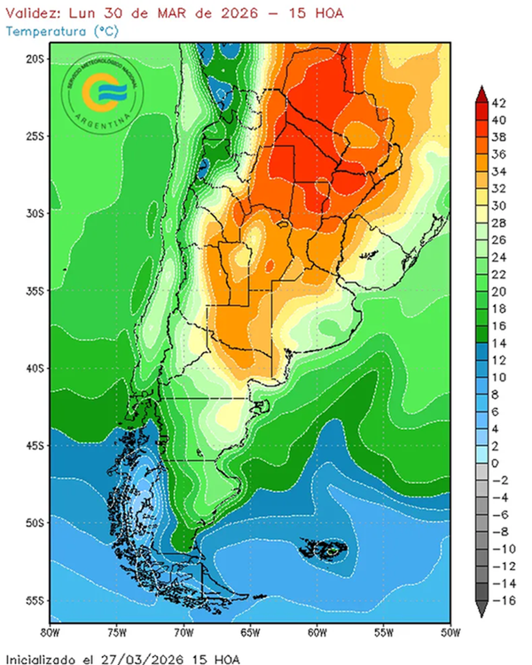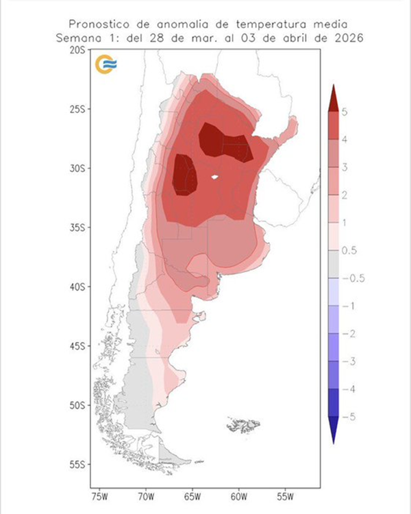 Provocará muy altas temperaturas en las provincias de Formosa, Chaco, Santiago del Estero, Córdoba, San Luis, Santa Fe y el noroeste de la provincia de Buenos Aires.