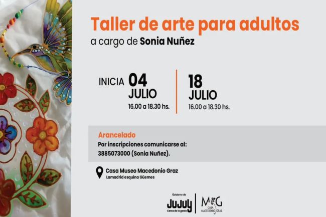 La Casa Museo Macedonio Graz abrirá sus puertas este julio con una propuesta especial para quienes desean explorar su creatividad: un taller de arte para adultos a cargo de la artista Sonia Núñez. El espacio funcionará los días 4 y 18 de julio, de 16:00 a 18:30 horas.