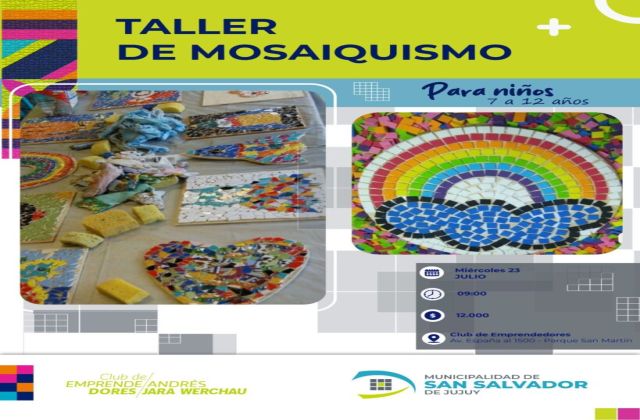 En el marco de las actividades recreativas y formativas para estas vacaciones de invierno, el Club de Emprendedores de la Municipalidad de San Salvador de Jujuy presenta una propuesta artística pensada especialmente para los más chicos: un Taller de Mosaiquismo destinado a niñas y niños de entre 7 y 12 años.