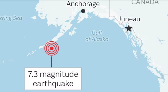 El Servicio Meteorológico de Estados Unidos emitió una alerta de tsunami en la costa de Alaska tras registrarse un terremoto de magnitud 7,3.