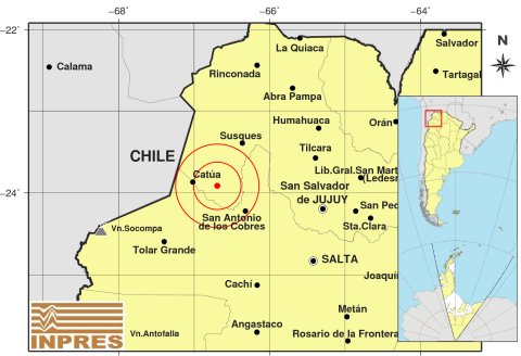 La magnitud de este movimiento telúrico fue de 3.5 en la Escala de Richter y a una profundidad de 225 kilómetros, con epicentro a -23.906 (latitud) -66.738 (longitud).