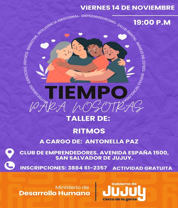 El Ministerio de Desarrollo Humano de Jujuy, a través de la Secretaría de Desarrollo Integral, invita a participar de una nueva edición del programa “Tiempo para Nosotras” destinado a promover el autocuidado, el bienestar emocional y la recreación como herramientas esenciales para fortalecer el desarrollo integral de las mujeres.