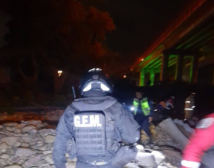 Ante la urgencia y la dificultad del terreno, efectivos del Centro de Gestión (Unidades Móviles X-42) y del GEM 5 debieron descender de sus vehículos y cruzar el río a pie para sumarse al auxilio.