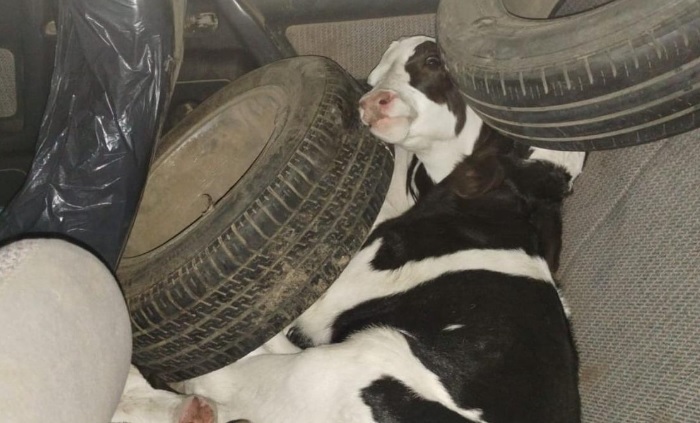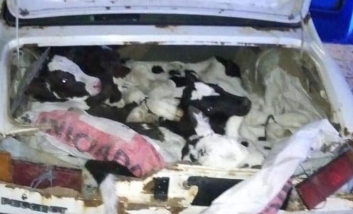 Los tres hombres, oriundos de Gálvez, no pudieron justificar la titularidad del vehículo ni la de los animales. Los ocho iban acostados en el baúl, precisó el móvil de Cadena 3 Rosario.