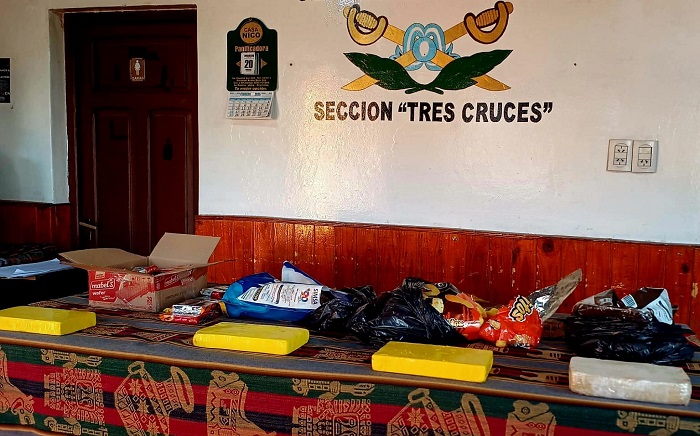 En presencia de testigos, los uniformados inspeccionaron una bolsa de snacks, dos bolsas de cereales y una caja de obleas, contabilizando cuatro paquetes rectangulares que contenían una sustancia blancuzca polvorienta.