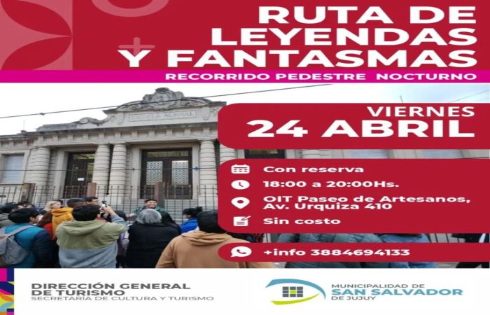 La Dirección de Turismo de la Municipalidad de San Salvador de Jujuy invita a la comunidad a participar de una travesía denominada “Rutas, leyendas y fantasmas”, que se llevará a cabo el próximo viernes 24 de abril de 18 a 20 horas.