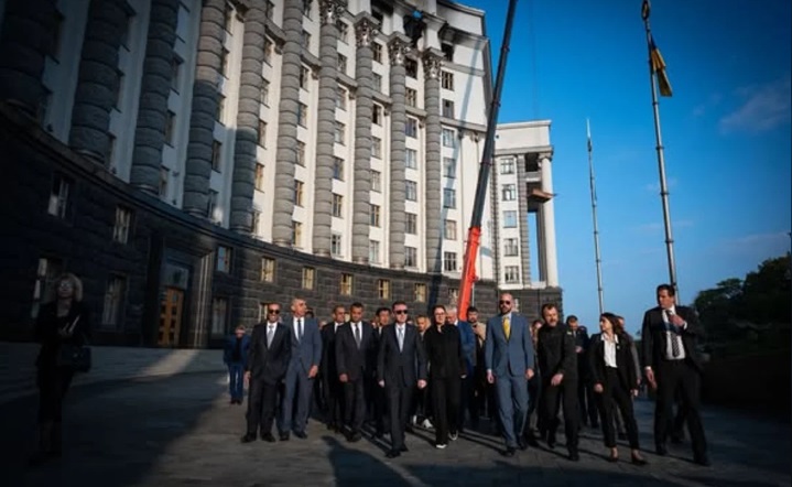 “Junto con Igor Klymenko y Andrii Sybiha, informamos a 60 jefes de misiones diplomáticas acreditadas en Ucrania sobre las consecuencias de uno de los mayores ataques aéreos rusos desde el comienzo de la invasión a gran escala. Mostramos los pisos del edificio del Gabinete de Ministros dañados por el ataque ruso. Actualmente se están eliminando las consecuencias y pronto comenzarán las obras para cubrir el tejado”, señaló Svyrydenko.