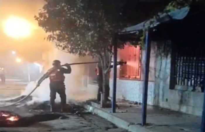 Cuando comenzaron a incendiar la casa ya no estaba efectivos de la policía custodiándola, pero ante el peligro que el fuego consuma gran parte de la vivienda nuevamente se hicieron presentes en el lugar efectivos policiales y bomberos junto a policías se apostaran en el lugar.