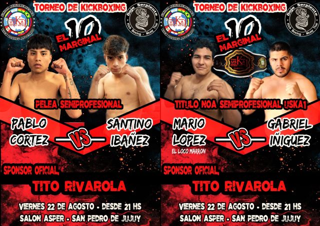 Por otra parte, detalló, “los títulos hay un título NOA Argentino, semi pro y un semi pesado semi pro, donde en la categoría 63 kg, va Santino contra Pablo de Jujuy y en la otra va Nico López contra Nicolás Durand”.