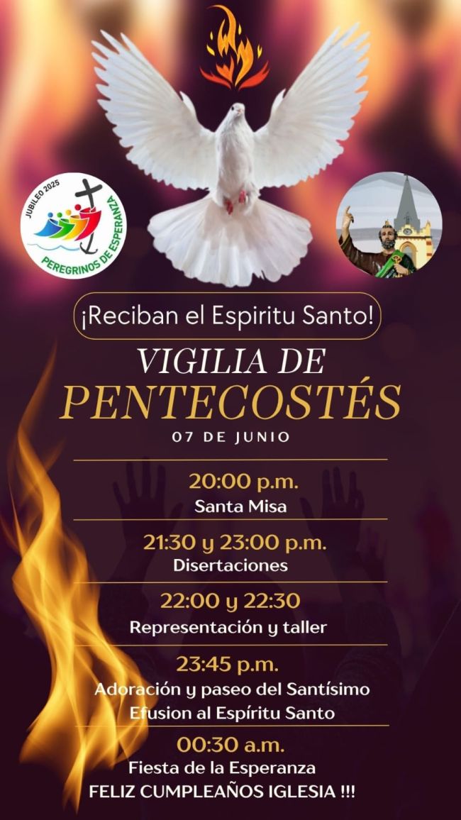 En la ciudad de San Pedro de Jujuy se realizará la Vigilia de Pentecostés este sábado 7 de junio.